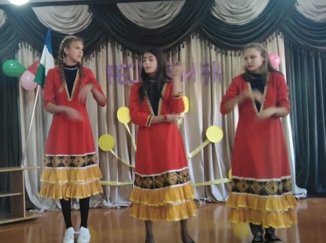 Учащиеся школы прочитали замечательные стихи башкирских писателей, исполнили песню о Башкортостане, девочки приготовили башкирский танец.