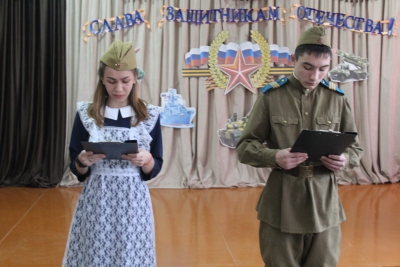 22 февраля и в нашей школе прошло мероприятие, посвящённое Дню защитника Отечества. Ребята поздравили мужчин: песнями, танцем и стихами. Девочки показали инсценировку шуточной сценки "На первый, второй рассчитайся!" Ребята вручили мужчинам открытки и медальки, сделанные своими руками.