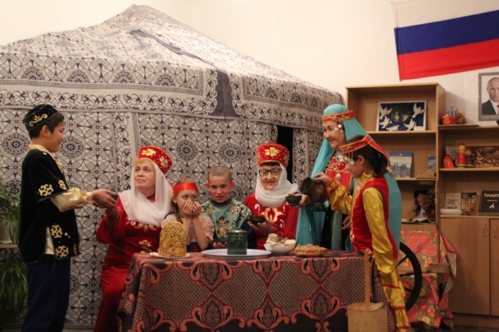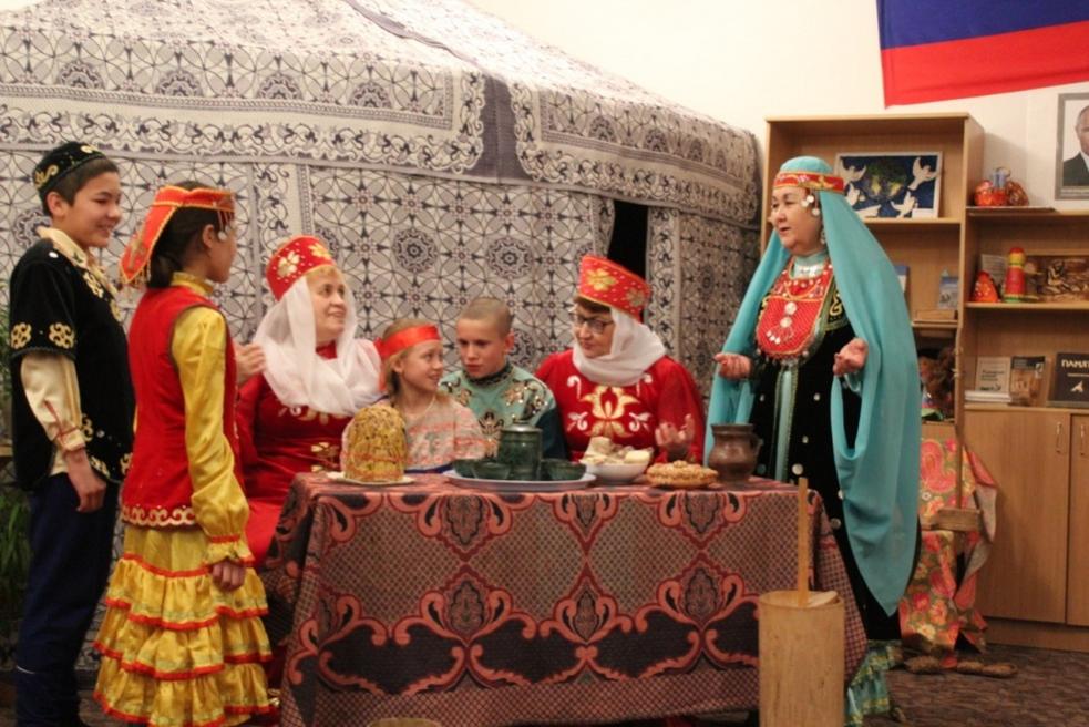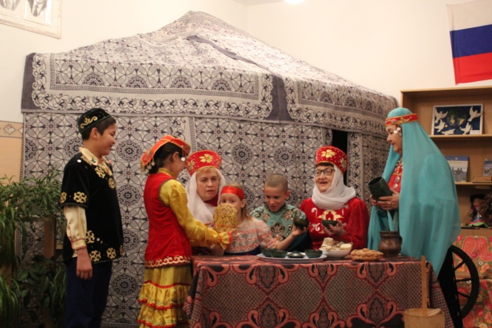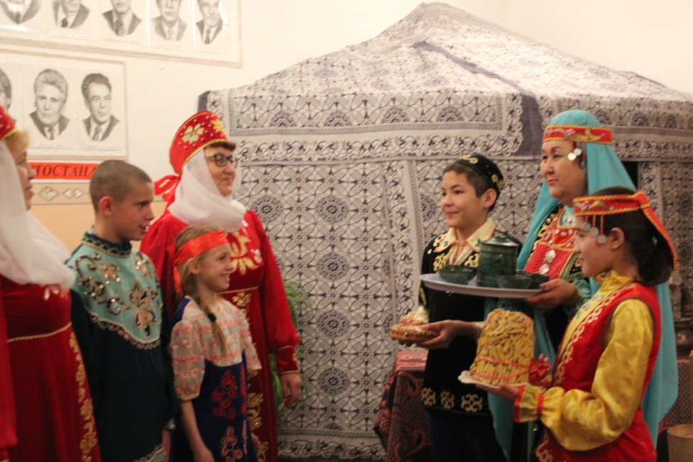 5.Театрализованное представление «Встреча гостей». Учителя Киселёва А.Е.,Мокшанцева Н.С., Зубаирова З.А. совместно с учащимися 5 класса подготовили мероприятие по сценарию.